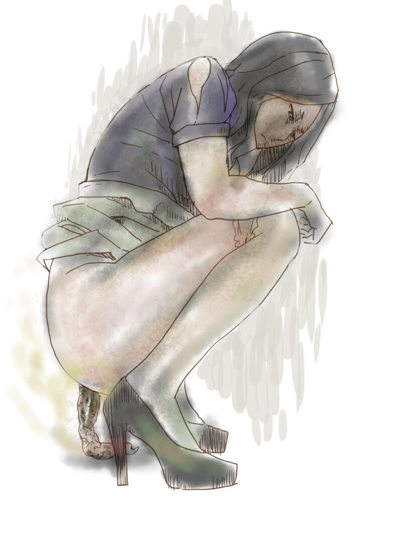 [三杯酢] おばさんのトイレを下から覗く [スペイン翻訳]
