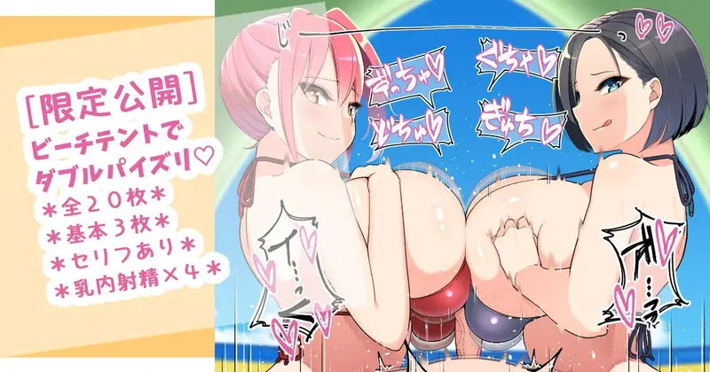 [さきです] 実&彩がビーチテントでダブルパイズリ搾精♡
