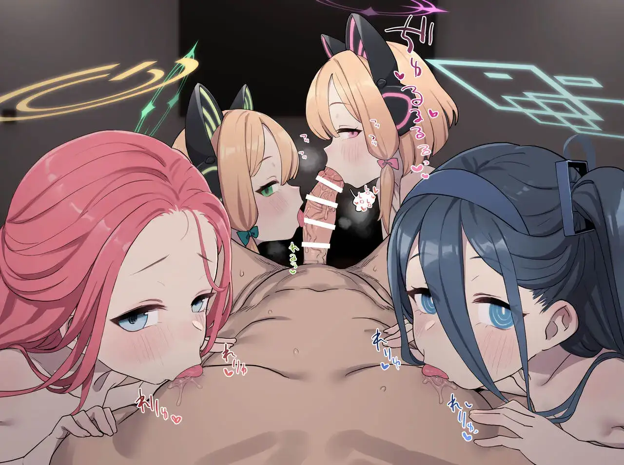 [Б] ゲーム開発部に乳首舐めWフェラしてもらう ( ブルーアーカイブ )
