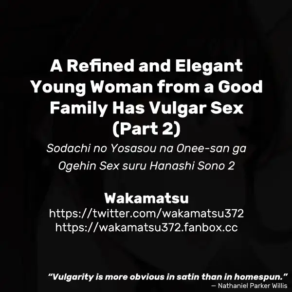 [Wakamatsu] Sodachi no Yosasou na Onee-san ga Ogehin Sex suru Hanashi Sono 2 | A Refined and Elegant Young Woman from a Good Family Has Vulgar Sex (Part 2) [English]